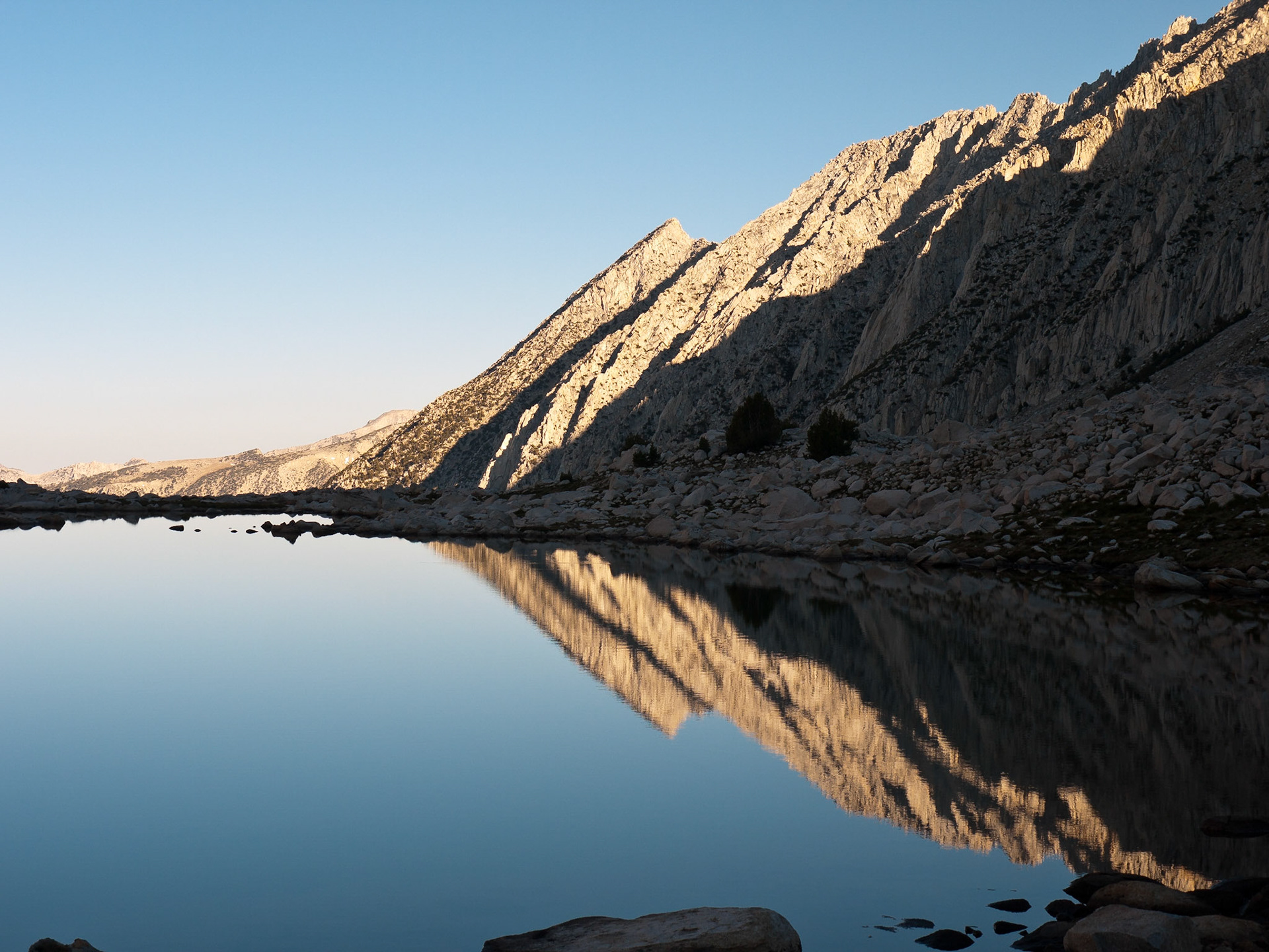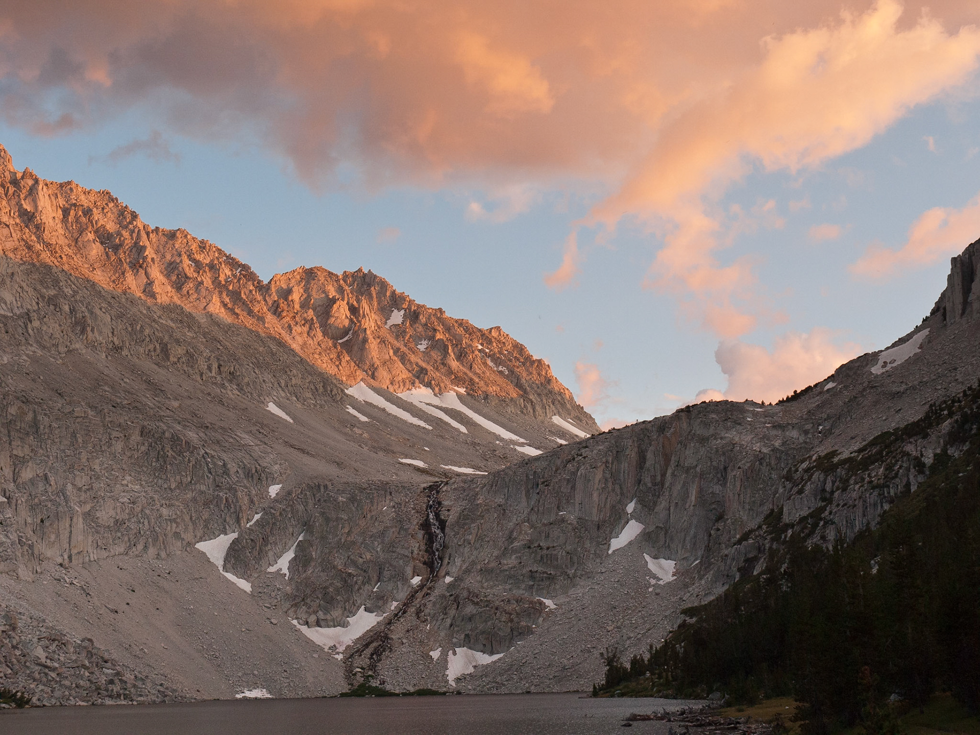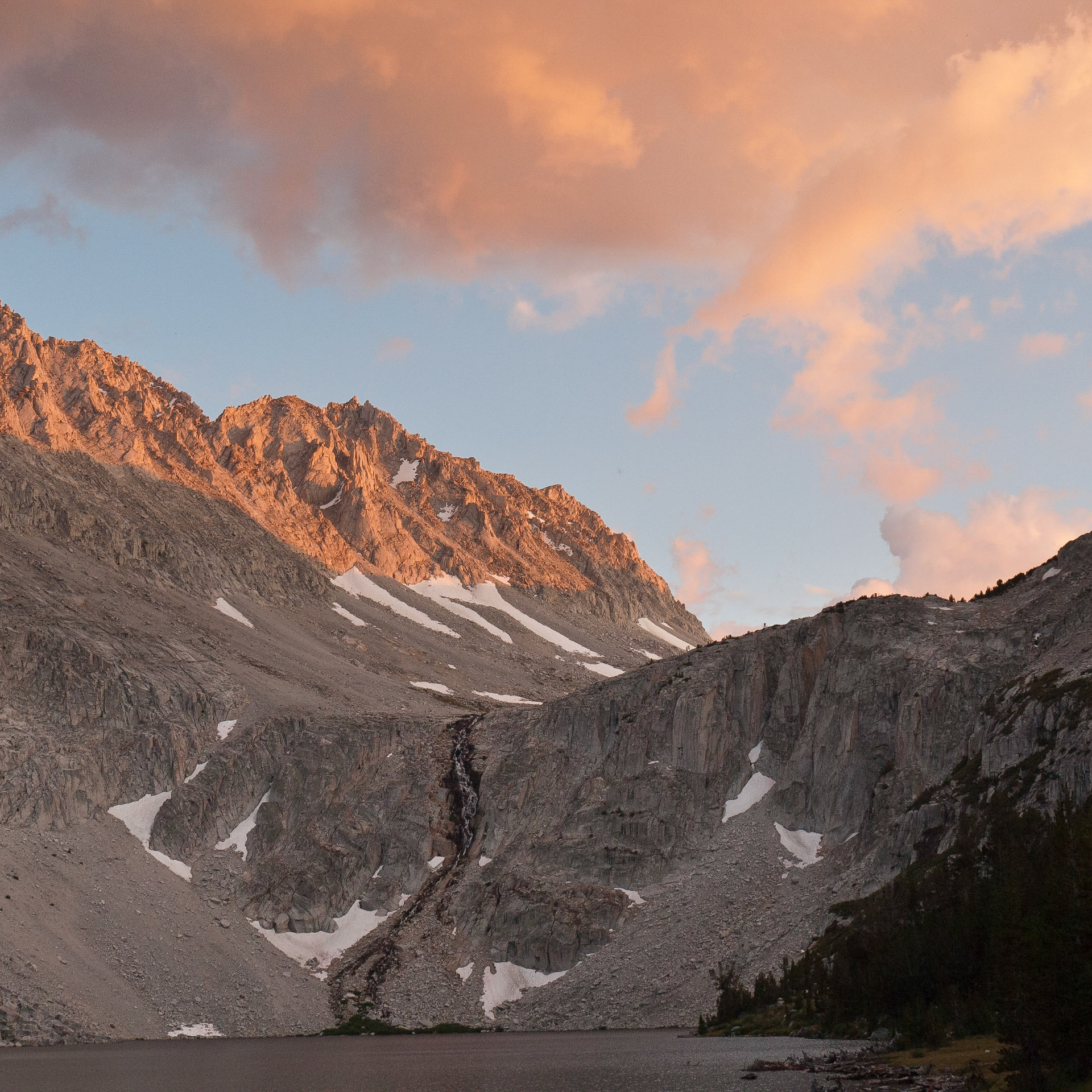 Sunrise, Moonset above Lake Italy